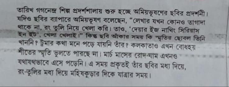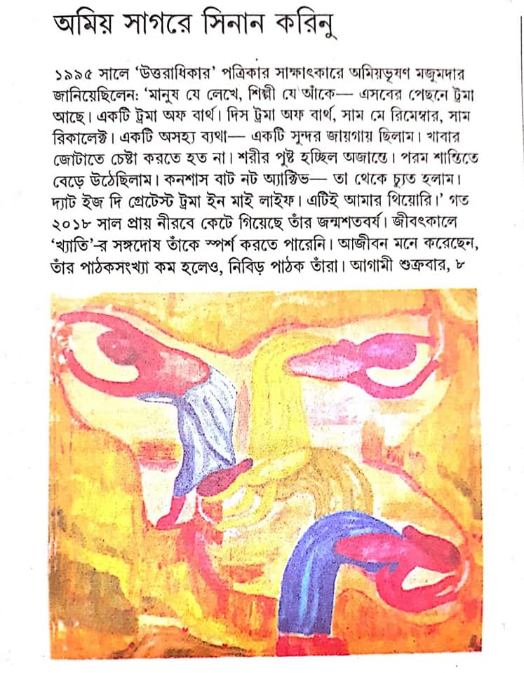 অমিয়ভূষণ মজুমদারের শতবর্ষ উপলক্ষ্যে ৩ থেকে ১২ মার্চ অনুষ্ঠিত হল তাঁর আঁকা ছবির প্রদর্শনী "লেখক অমিয়ভূষণের রঙ তুলির খেলা" | কলকাতার গগনেন্দ্র শিল্প প্রদর্শশালায়।